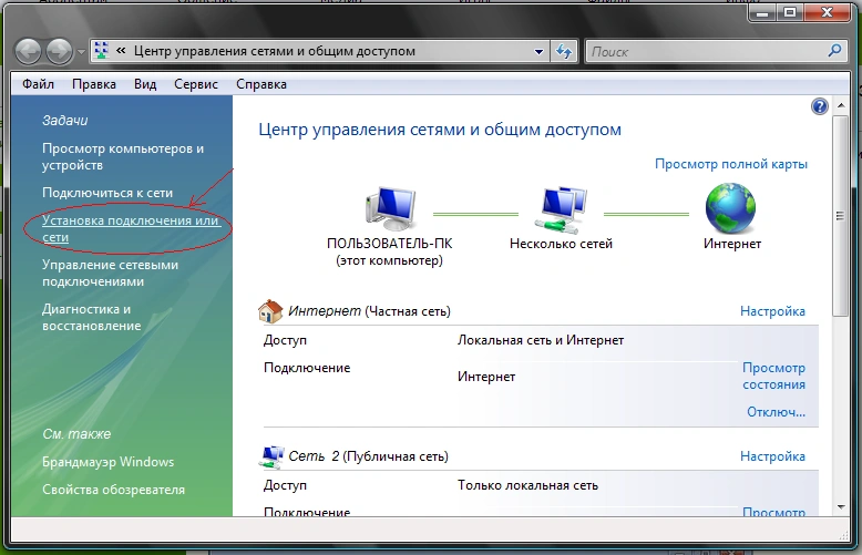 В «Панели управления» выберите «Центр управления сетями и общим доступом».