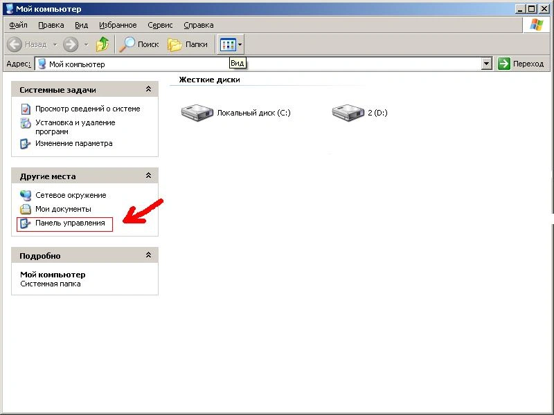 На рабочем столе откройте «Мой компьютер», в нем откройте «Панель управления».