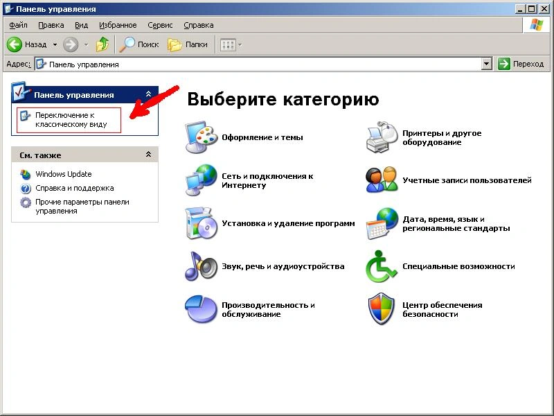 В «Панели управления» выбираем «Переключение к классическому виду».